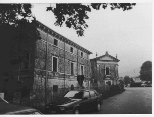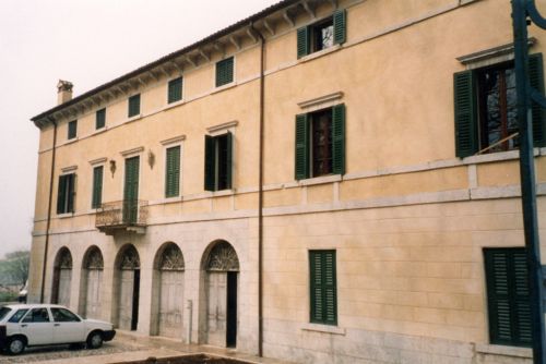 - Osservazioni: A pianta rettangolare si eleva di tre piani. Il prospetto principale ha al piano terra cinque arcate a tutto sesto su pilastri. Forometrie rettangolari su cinque assi.