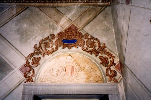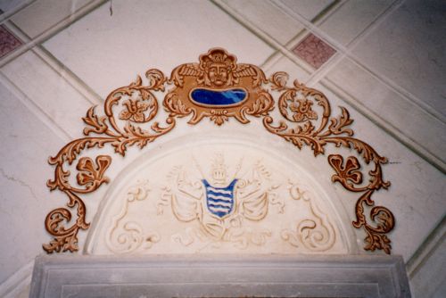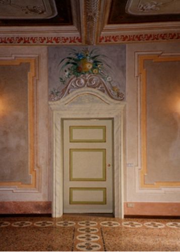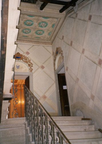 - Descrizione: scalinata - decori sopraporta con la riproduzione di stemmi gentilizi