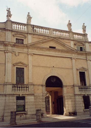- Osservazioni: Il prospetto principale è composto da un corpo centrale che funge da elemento unificatore alle due ali laterali asimmetriche. Entrando dal monumentale portale di ingresso principale sormontato da timpano, si accede a una corte interna, oggi rovinata dai molteplici usi non consoni. La facciata principale con le ali laterali costituisce un lungo rettilineo, quinta su strada.