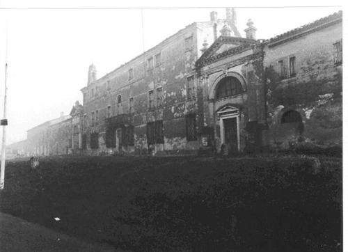 Complesso di pianta rettangolare costituito in linea da corpo padronale inquadrato da due edifici timpanati di altezza inferiore ai quali altri edifici sono addossati andando a costituire così un lungo fronte quinta su strada.Specifiche: