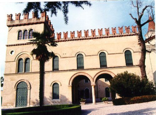 Complesso costituito da villa, chiesa e annessi rustici. Verso il lago il prospetto principale presenta due torri angolari mentre verso mezzogiorno un porticato a due arcate mette in comunicazione il cortile interno con il giardino e il parco.Specifiche: