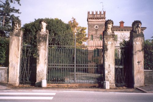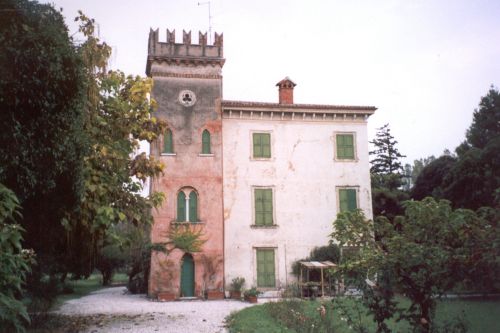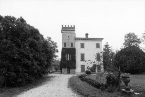 Il corpo padronale, al centro di un fondo comprendente giardino, brolo, scuderie e corte agricola, è costituito da un edificio a tre piani che il Simeoni attribuisce all'architetto Giuseppe Barbieri. Verso mezzogiorno la villa si presenta come un sobrio edificio dai caratteri settecenteschi nelle cornici modanate delle finestre, nell'ingresso centinato, nella gronda sorretta da mensole sagomate. A settentrione il corpo padronale, nelle torrette coronate con merlatura ghibellina, nelle finestre a sesto acuto e nell'intonaco riproducente la trama muraria degli edifici gotici, richiama il gusto neo-medioevale. Separata dal giardino sorge la corte agricola: un vasto complesso di scuderie, abitazioni del gastaldo, stalle e fienili. Negli anni settanta del Novecento, l'antica corte, radicalmente trasformata, ha lasciato il posto alla piazza del paese, intitolata al senatore Antonio Alberti. Elemento di spicco le scuderie che presentano un'elegante apertura trabeata di gusto neoclassico sostenuta da colonne tuscaniche.Specifiche: