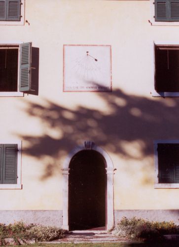 - Osservazioni: La facciata si delinea come un accostamento di tre corpi di fabbrica ciascuno dei quali individua un proprio asse di simmetria e un rigoroso ordine nella disposizione delle finestre e dei portali di ingresso arcuati. La parte signorile occupava sicuramente la porzione centrale e orientale, attualmente di colore ocra con portali arcuati a tutto sesto e soglie di ingresso in acciottolato a motivi geometrici. La parte occidentale, intonacata di colore rosso porpora,era anticamente la stalla il cui accesso è caratterizzato da un portale a sesto acuto. Su una parete della sala nell aparte centrale si apre una piccola cappella dedicata alla Madonna con Bambino.