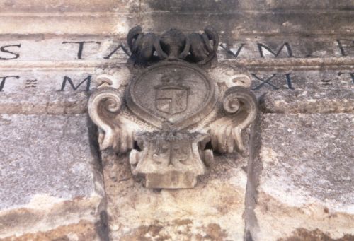 - Descrizione: maestoso portale, inquadrante un fornice a sesto pieno con profili bugnati, si apre nel muro di cinta, raccordandosi a questo a mezzo di volute; corona il portale una trabeazione riportante la scritta «Bonis tantum patet - rist. MDCCCLXI tum» e lo stemma araldico della famiglia Winsemann.