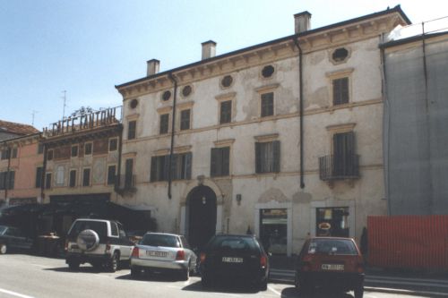 - Osservazioni: Nel fronte principale del palazzo, emerge una ripartizione asimmetrica della facciata evidenziata dal maestoso portale di accesso che con la sua chiave ad arco sporgente sfonda delicatamente la soprastante cornice marcapiano in pietra. Spalle e zoccoli in bugnato rifiniscono l'accesso conferendogli una delicata austerità che ritroviamo comunque su tutto l'impianto di facciata.