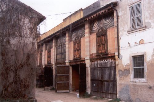 - Osservazioni: Un fronte scandito da pilastri alti come la facciata, sui quali insistono gronde in legno sagomate, intervallati da cancellate in ferro battuto e inferriate a raggiera che chiudono la parte terminale del prospetto.