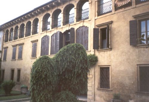 - Osservazioni: La facciata interna è caratterizzata da una fascia centrale individuata dai due portali dell'androne al piano terra, da una quadrifora con archi sagomati al primo piano e da una lieve interruzione del loggiato formata da una serie di archi a tutto sesto al secondo piano.