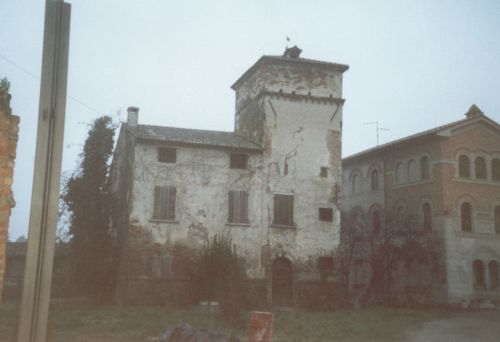 La corte era cinta da un alto muro in parte merlato ed ha al suo interno, l'orto, i rustici, la casa padronale con la torre colombara ed una barchessa ad archi. Sul lato sud, l'abitazione per i lavoranti e un porticato con pilastri. Oggi è visibile solo la torre colombara e quel poco che rimane del castello.Specifiche: