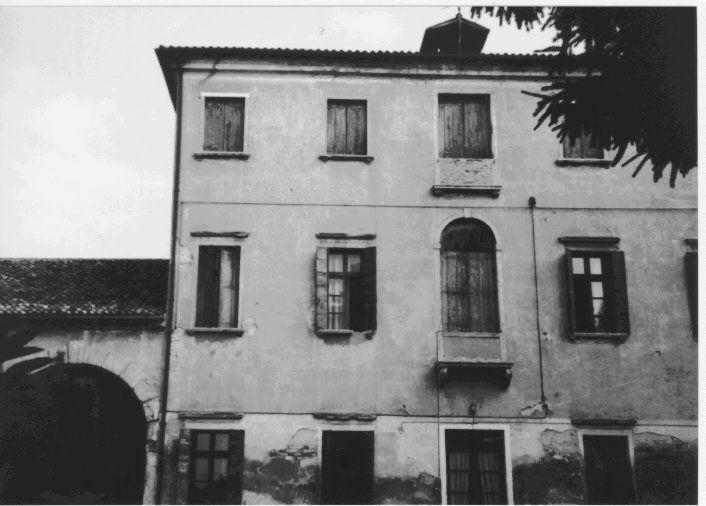 - Descrizione: Le monofore al piano nobile, un tempo affacciate su un balcone oggi privo di balaustra, hanno una cornice in pietra con aggetto all'imposta e in chiave.