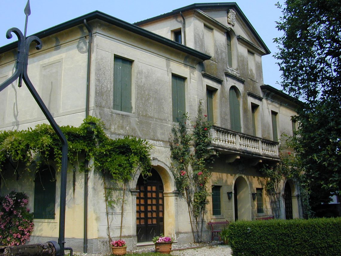 Lungo edificio a pianta rettangolare scandito da un porticato architravato su pilastri a doppia altezza. La villa prospetta su un giardino recintato e decorato da un pozzo con ampio parco alle spalle.Specifiche:
