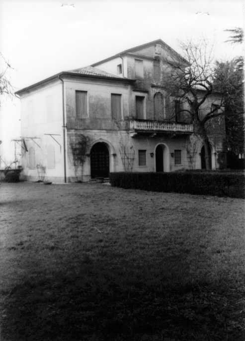 - Osservazioni: Il prospetto presenta la sopraelevazione nella parte mediana. Al piano terra si apre in tre portali archivoltati in pietra. Al piano nobile porta archivoltata e due portefinestre su terrazzo con balaustra lapidea.