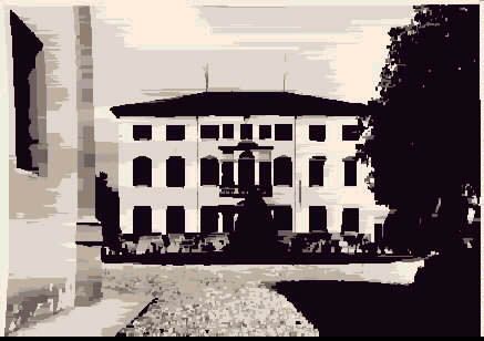 - Osservazioni: Si eleva su due piani più le soffitte. Ha il fronte principale sviluppato su nove assi forometrici.