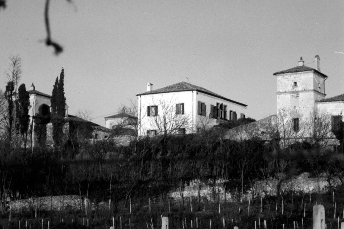 Complesso costituito dalla villa padronale e quattro edifici a torre, situati ai lati della corte, che inglobano l'adiacenza, la colombara, e l'oratorio. Il prospetto rivolto a sud si apre su un'aia lastricata in blocchi di trachite.Specifiche: