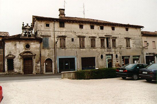 - Descrizione: Il fronte sulla corte interna, maggiormente conservato nelle forme e nella distribuzione, è caratterizzato da una monofora con balconcino e mascherone in chiave di volta dell'arco a tutto sesto.