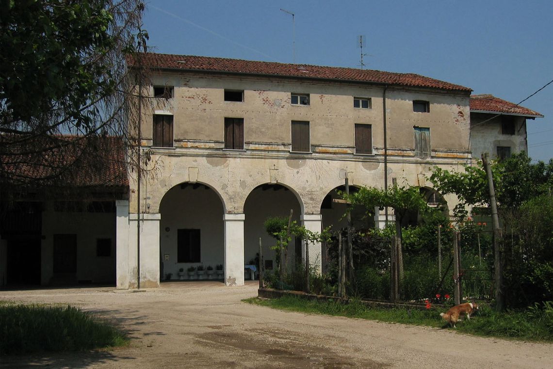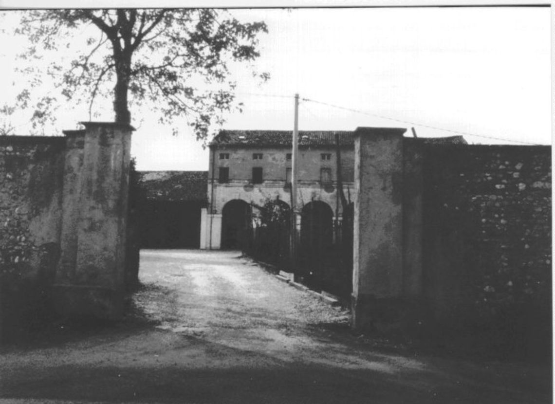 - Osservazioni: Il corpo padronale è caratterizzato da un portico di quattro grandi arcate su pilastri al piano terra, sovrastato da recenti aperture disassate che interrompono la doppia cornice marcapiano.