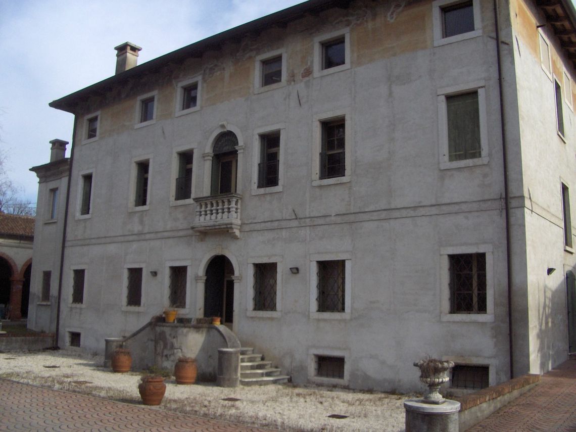 Il complesso, ubicato oggi all'interno del tessuto abitato storico, presenta un corpo padronale, che si attesta con un severo fronte urbano sulla stretta sede stradale; verso sud, invece, si apre su una corte-giardino, delimitata dal volume di una barchessa porticata. L'accesso carraio al cortile interno è segnato da un ampio portale a profilo mistilineo, che immette direttamente nello spazio porticato della barchessa.Specifiche: