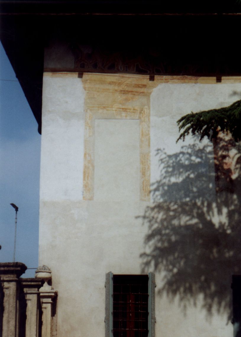 - Descrizione: sulle facciate; oggi ormai persi quasi del tutto ad eccezione della fascia al di sotto della gronda in cui si possono ammirare putti giocosi e altre allegorie.