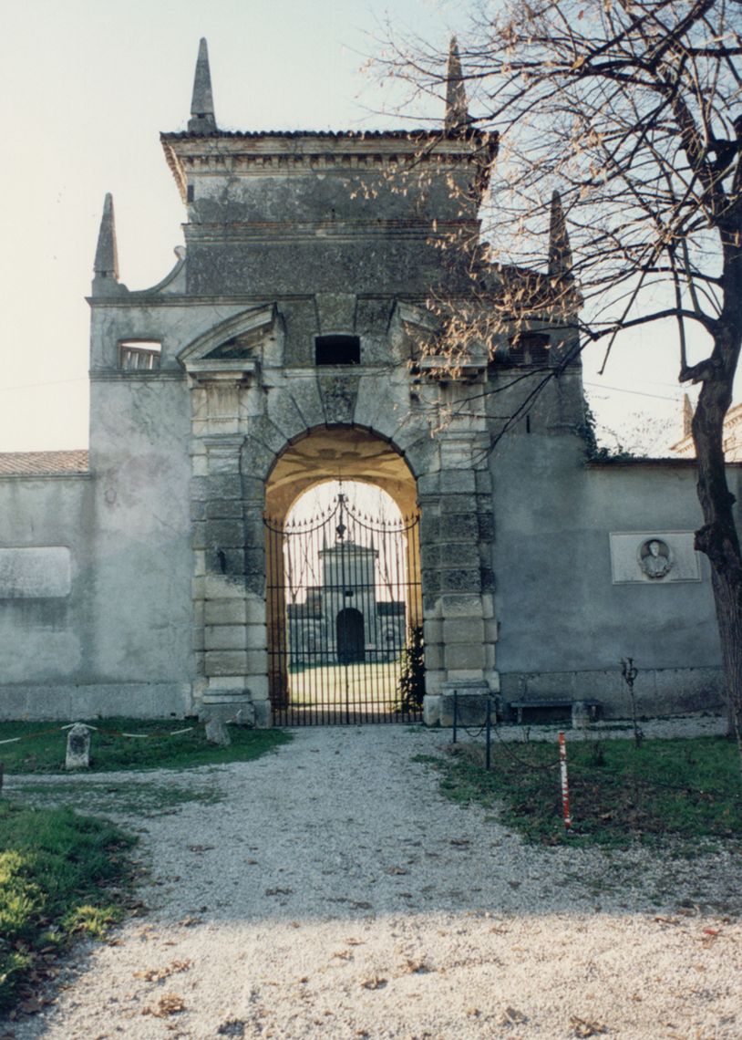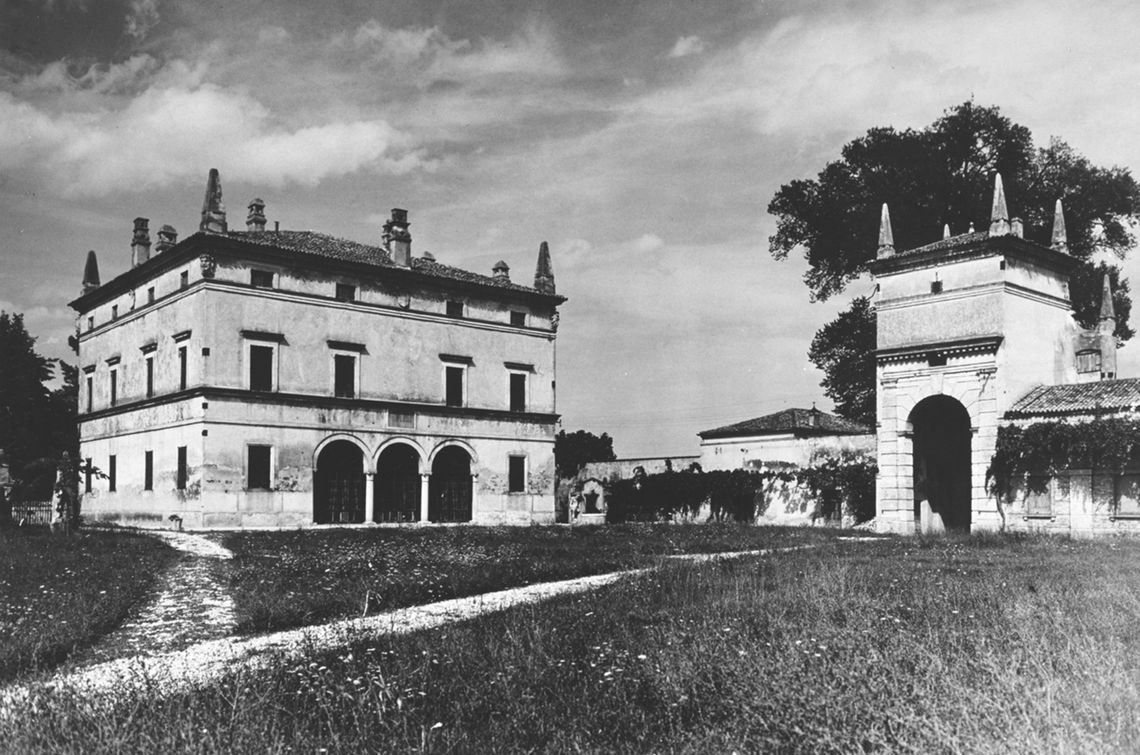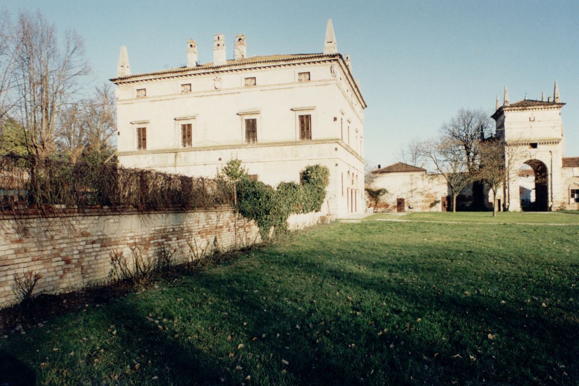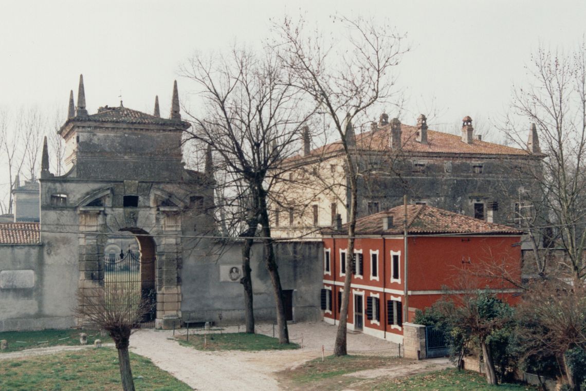 - Osservazioni: Si elevava di tre livelli sottolineati su tutti i fronti da fasce marcapiano. Il prospetto principale vede la parte centrale interamente occupata da un portico a tre campate affiancato da due finestre. Gli archi a tutto sesto, che danno luce al salone centrale, presentano la ghiera segnata nell'intonaco e sono sostenuti da colonne in pietra con basi ioniche e semplici capitelli con foglie d'acanto. Il prospetto, così come gli altri quattro dell'edificio, era infine impreziosito da una serie di fregi monocromi dei quali oggi rimangono solo poche tracce tra cui il frammento di un dio fluviale che reca lo stemma della famiglia, la sagoma di una gigantesca figura femminile e un fregio superiore con figure animali. Il prospetto posteriore riprende la stessa organizzazione ma al piano terra presenta un portale ad arco ripetuto al piano superiore dove si apre un piccolo balcone. Tetto a quattro falde in coppi.