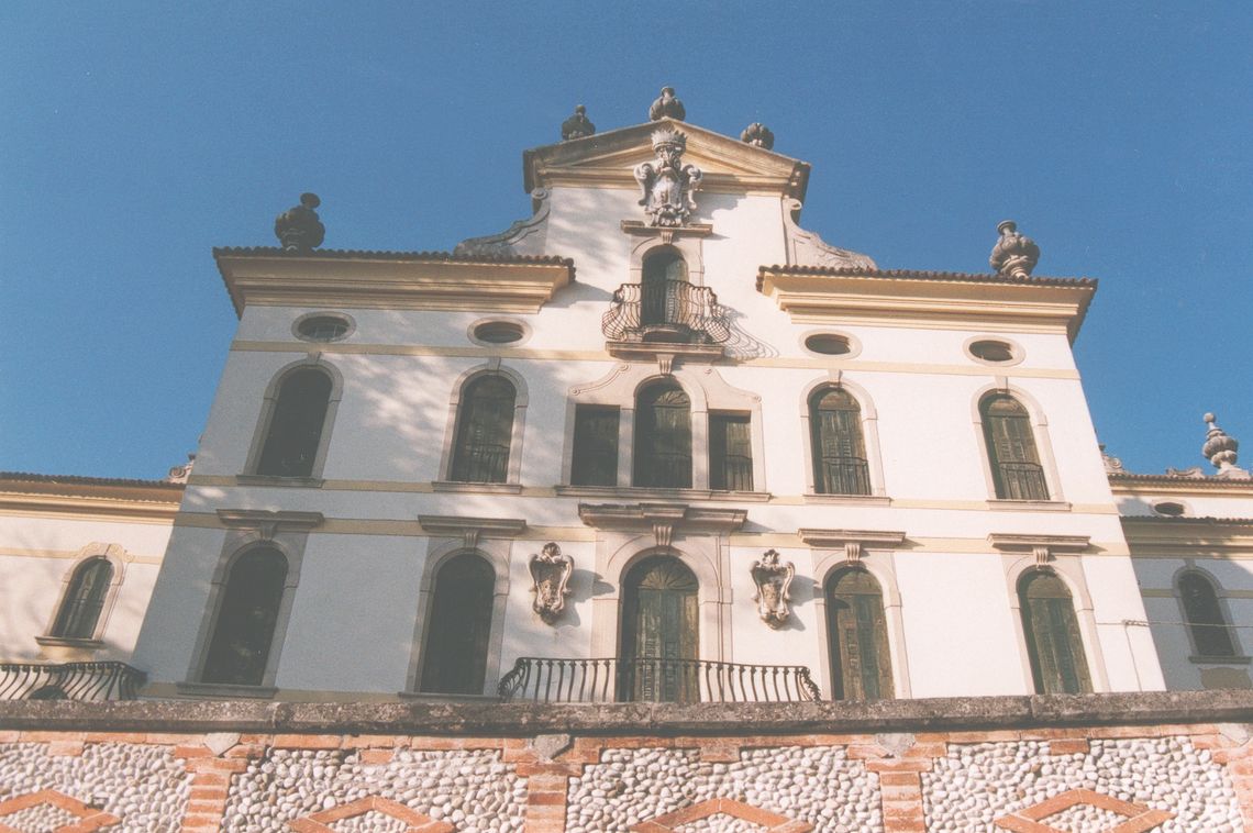 - Descrizione: La parte centrale del corpo padronale termina con un timpano modanato raccordato con volute e con i vertici segnati da pinnacoli in pietra a forma di vaso.