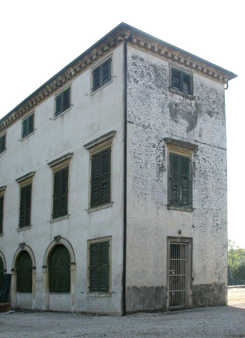 - Osservazioni: Si compone di un robusto corpo centrale e di due ali laterali arretrate ma della medesima altezza di tre piani, che si sviluppano secondo uno schema tripartito su entrambi i prospetti. La facciata principale, rivolta ad est, è caratterizzata da una loggia al primo piano, a tre archi impostati su pilastri tuscanici con piedistalli retti da mensole, riquadrata da un'unica incorniciatura rettangolare in pietra. Finestre architravate trabeate corrono lungo l'intero piano nobile, estendendosi anche ai corpi laterali. Una cornice a dentelli cubici corona e unifica l'intero corpo di fabbrica.