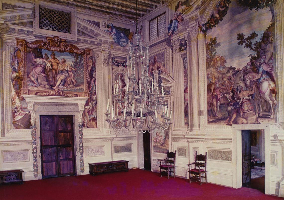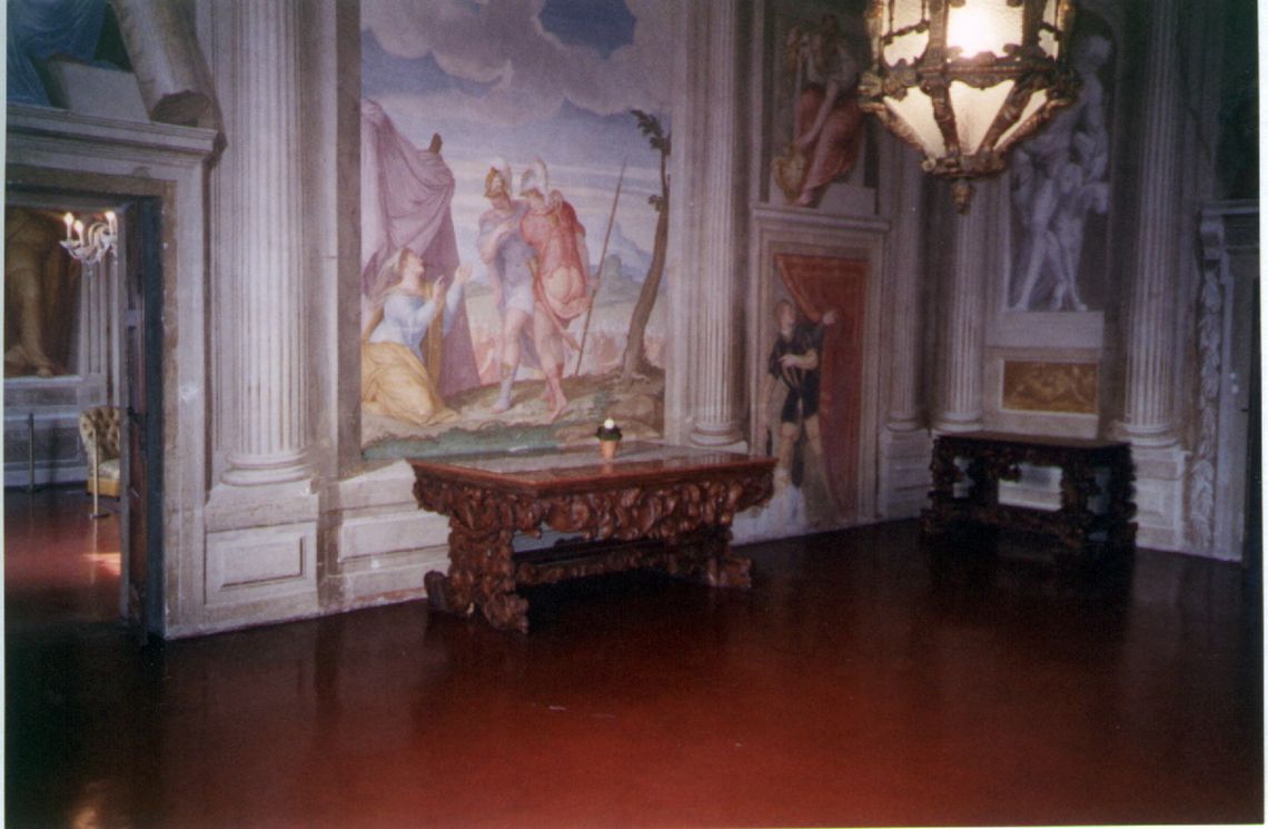 - Descrizione: Sulla parete principale è probabilmente affrescato lepisodio di "Eurialo e Niso"(?), mentre sugli spazi laterali le figure a monocromo di "Giove", "Crono", "Plutone" e "Nettuno". Sopra le porte sono raffigurate la "Fortezza", la "Temperanza" e la "Giustizia", sul camino "Venere con Amore" e, sullo sfondo, "Vulcano".