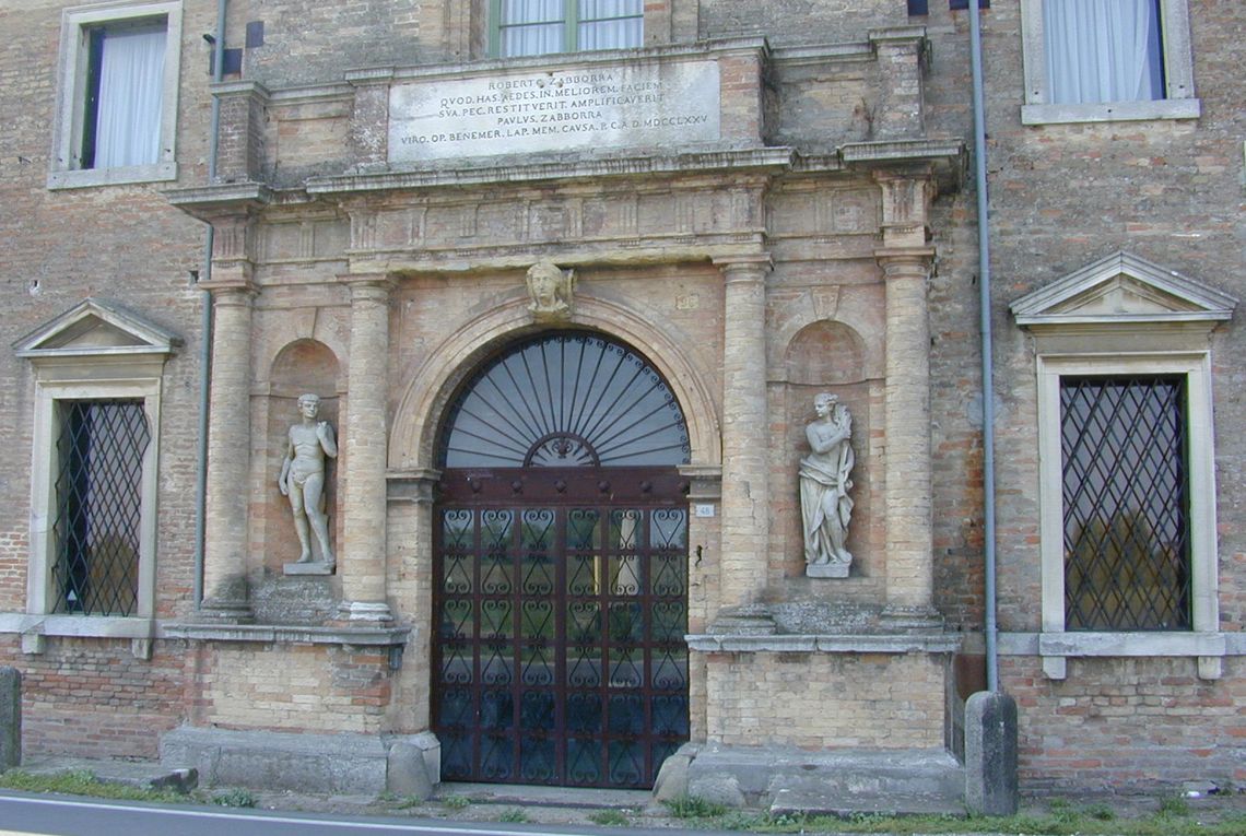Il complesso è articolato in un corpo con fronte di novanta metri, con torre al centro, alzato di due piani, conclusione con fianco timpanato. A questo volume due corpi di fabbrica si pongono ortogonalmente. All'interno il giardino.Specifiche: