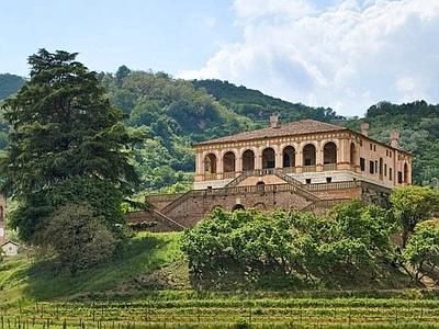 La villa poggia su un terrazzamento in sommità del colle, con scalinate, sostenute da arcate, inserite nel declivio. Fanno parte del complesso edifici rustici, stalla ed abitazione del gastaldo, e quattro portali monumentali.Specifiche:
