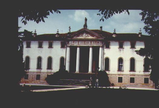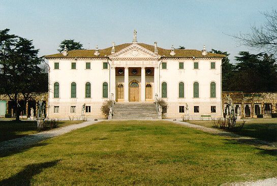 - Descrizione: Al centro della facciata della barchessa quattro lesene sorreggono un frontone triangolare.
