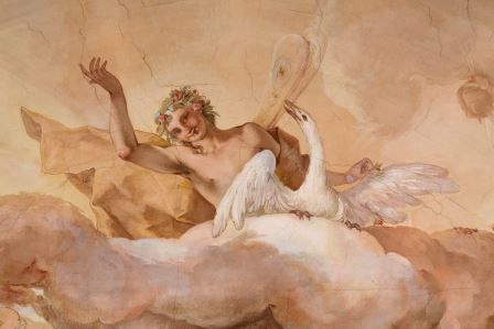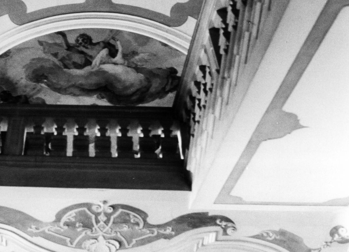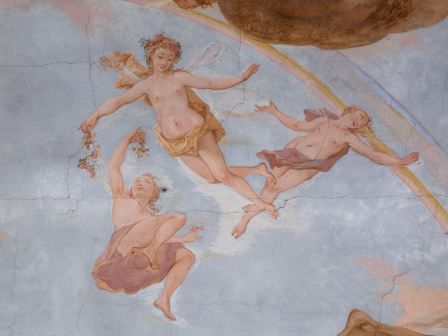 - Descrizione: La sala centrale del piano attico della villa è la più interessante grazie al vano a cupola che ospita sulla volta una decorazione ad affresco. Le quattro figure dipinte rappresentano le quattro parti del giorno o, per analogia, i quattro punti cardinali. L'opera è databile tra il 1730 e il 1740.