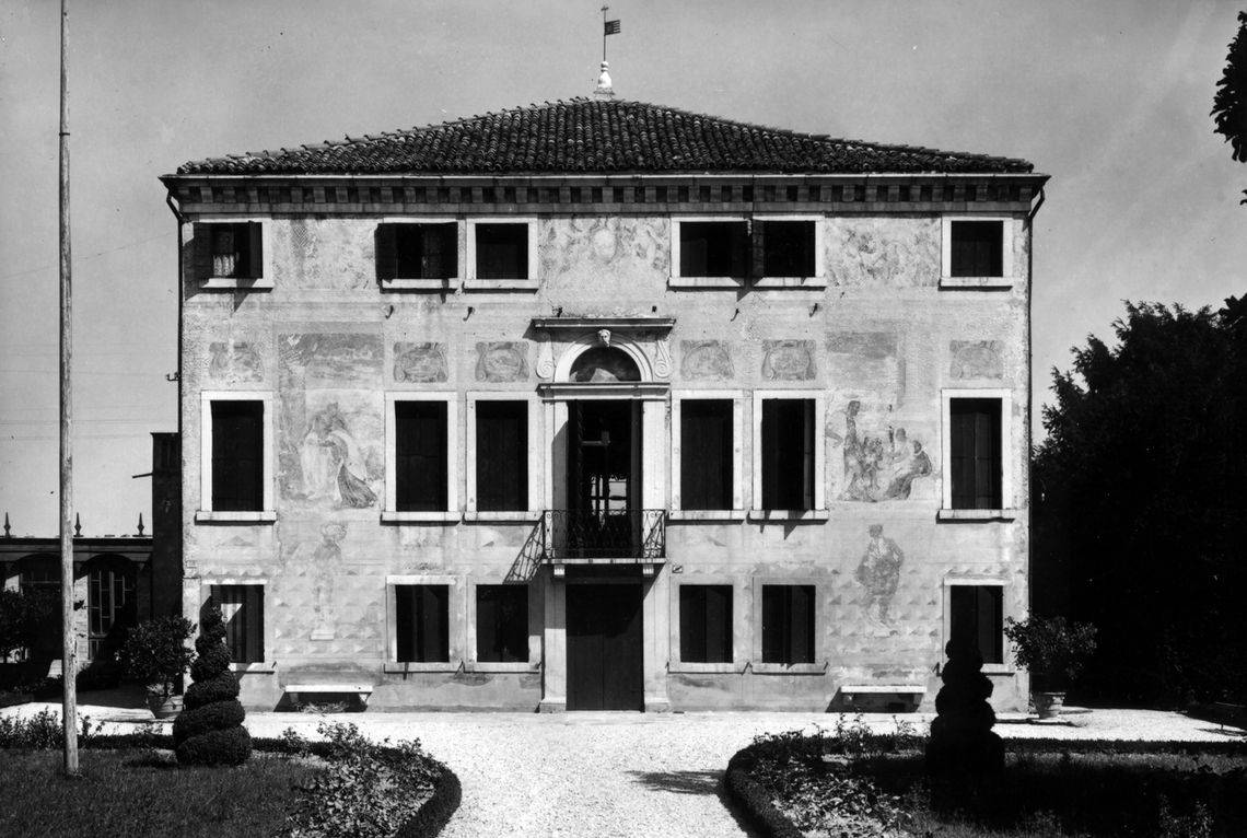 - Descrizione: Sulla facciata principale della casa padronale le usuali decorazioni in pietra o a stucco avevano lasciato il posto ad affreschi. Oggi la maggior parte di queste pitture è persa.