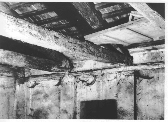 - Descrizione: Alti comignoli biforcati e camini sporgenti dalla muratura caratterizzano le strette facciate laterali del corpo padronale.