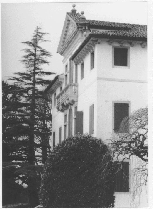 Edificio padronale con ampio giardino, organizzato secondo uno schema di tipo palladiano, con corpo centrale timpanato e basse barchesse laterali ampiamente arretrate.Specifiche: