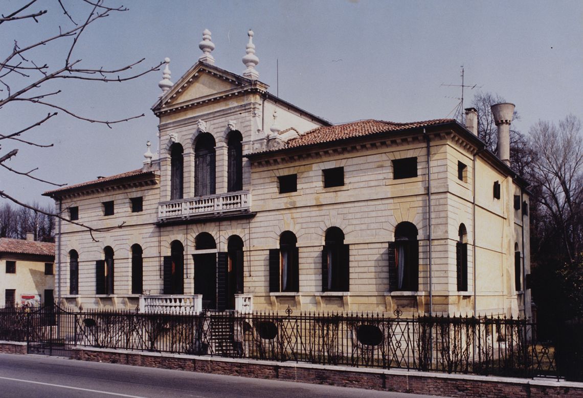 Complesso costituito da villa e annesso. Villa a pianta rettangolare su tre livelli, di cui uno seminterrato e sottotetto ribassato. Il corpo centrale si eleva maggiormente ed è concluso da timpano triangolare e vasi acroteriali. Tre aperture ad arco, a tutto sesto, sono in facciata e sui due livelli fuori terra, in corrispondenza del salone centrale. Mascheroni in chiave su quelle del piano primo. Realizzazione di una doppia scalinata nei primi decenni del '900. Sul retro, a Nord-Est, un fabbricato di servizio con campate ad arco.Specifiche: