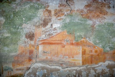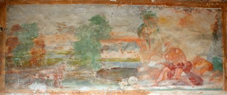 - Descrizione: Nella loggia, sulla facciata posteriore e su quella laterale Ovest resti di decorazioni ad affresco a motivi architettonici, medaglioni e figure.