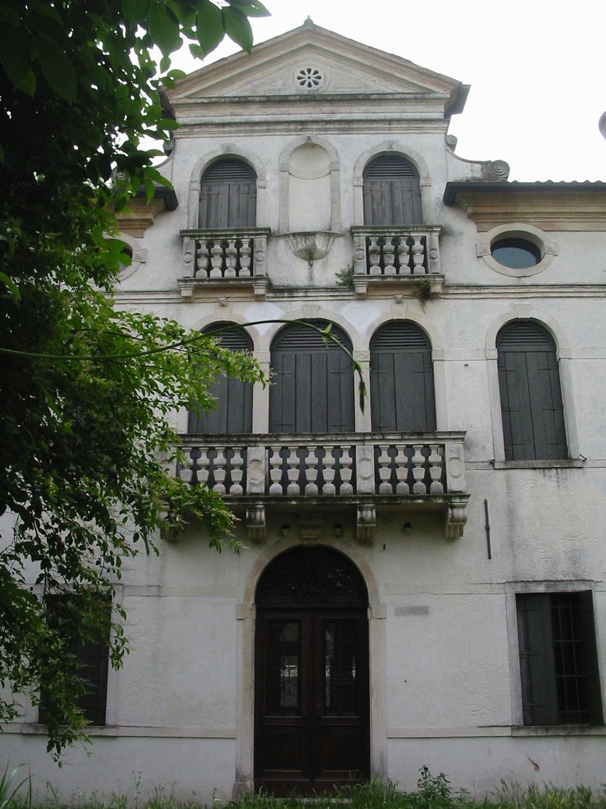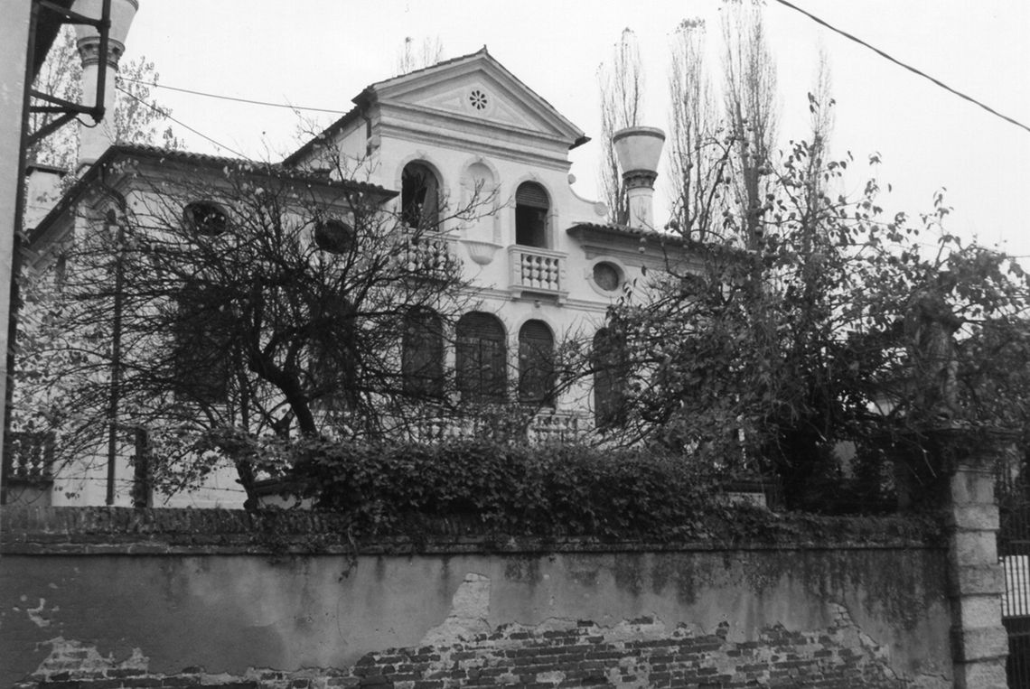 Complesso costituito da villa affiancata da due ali simmetriche distaccate. Villa a pianta rettangolare, su tre livelli pieni al centro, conclusi da timpano triangolare con volute laterali, e due più sottotetto ai lati. Disposizione classica tripartita degli ambienti. Portale di ingresso centinato. Aperture centinate a piano primo. Oculi ellittici nel sottotetto. Trifora centinata centrale con balaustra lapidea a piano primo. Balaustre lapidee a piano secondo. Ali laterali simmetriche, discoste, poste perpendicolarmente alla villa.Specifiche: