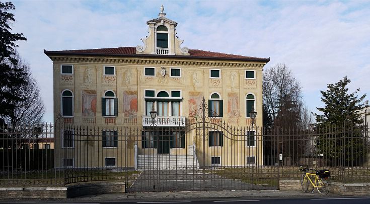 Edificio di forma cubica a tre piani, ripropone in pianta lo schema planimetrico tripartito con salone centrale a "T" interpassante e stanze laterali. Una scalinata conduce all'ingresso della villa, sovrastato da un elegante poggiolo in pietra su cui si affaccia una serliana.Specifiche: