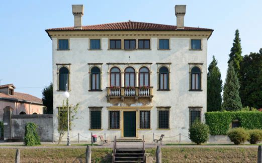 L'edificio è tra i primi esempi, per l'area extraurbana, di schema a blocco cubico isolato. Lo schema planimetrico riprende il passo tricellulare della tradizione veneziana. La facciata simmetrica è su tre piani con una trifora al piano nobile.Specifiche: