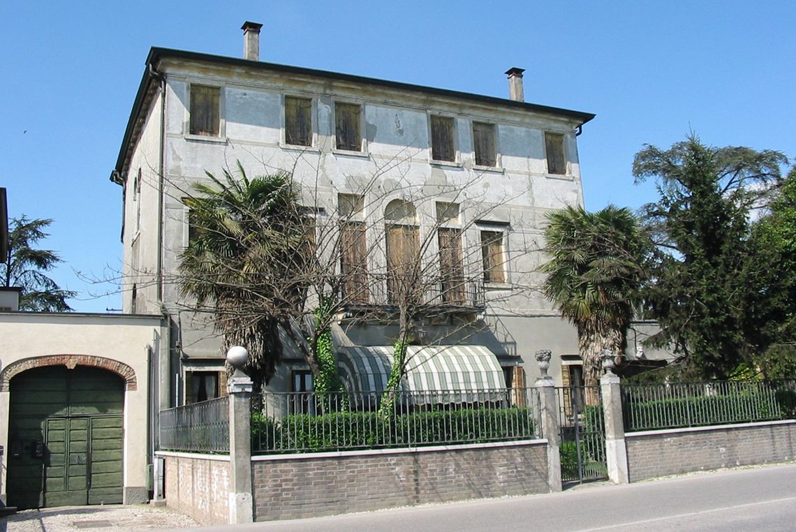 L'immobile presenta una pianta rettangolare e si sviluppa su tre livelli e su sei assi. Addossata a est è collocata una struttura con portico ad arco ribassato, loggia con trifora al primo piano e un piccolo volume di servizio al secondo piano.Specifiche: