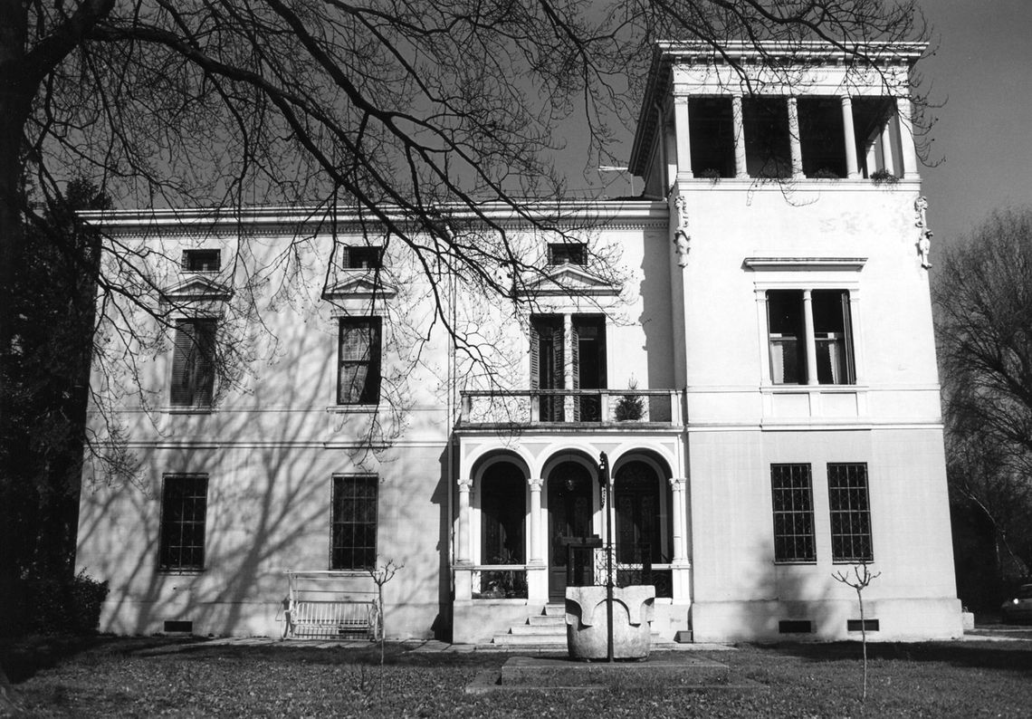 Il fabbricato con pianta a "L" si struttura su tre piani più un seminterrato. Sull'angolo sud-est si eleva di un livello in un loggiato ritmato da colonne e pilastri angolari che sorreggono una spessa trabeazione.Specifiche: