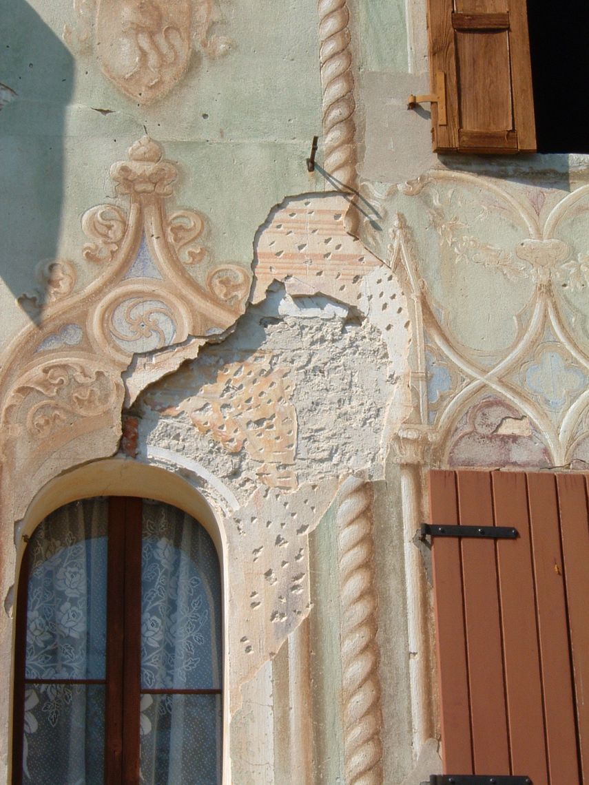 - Osservazioni: In una lacuna dell'intonaco esterno sono state ritrovate tracce di due decorazioni affrescate precedenti all'attuale ottocentesca, la più antica delle quali è stata datata in epoca rinascimentale. Gli interventi del 1997 hanno stravolto l'appartamento del secondo piano.