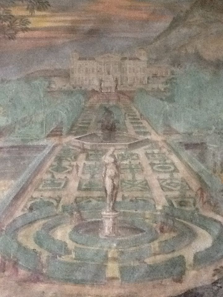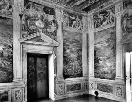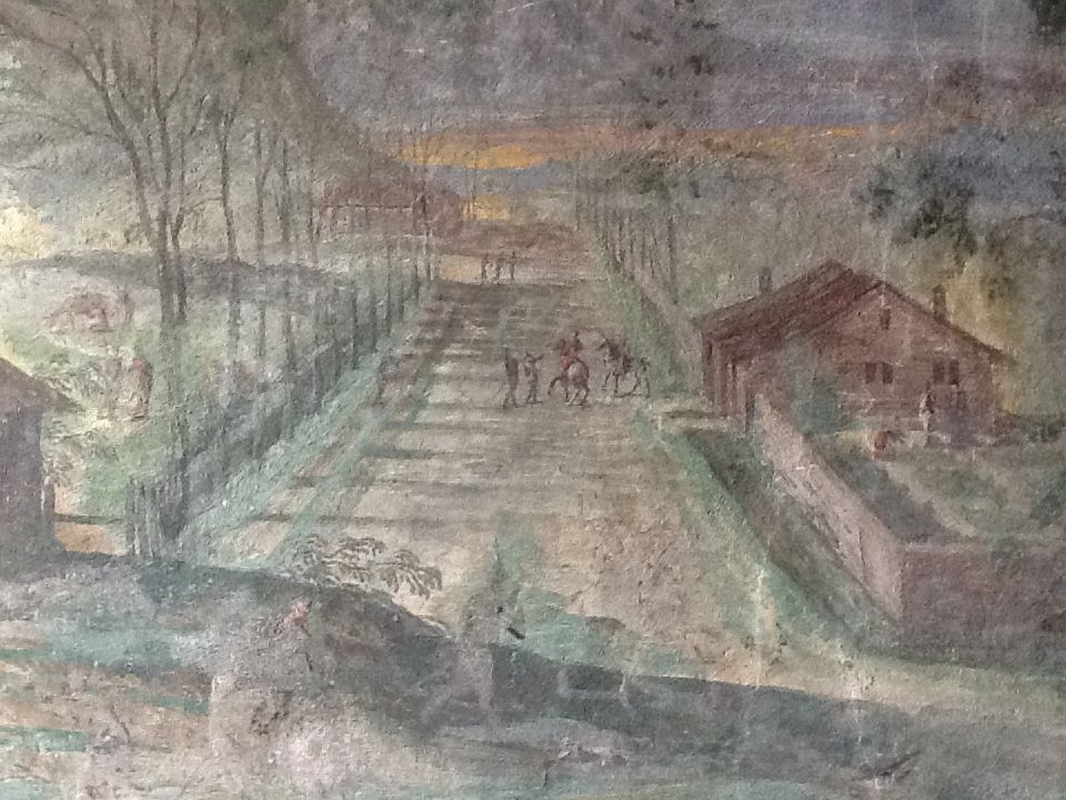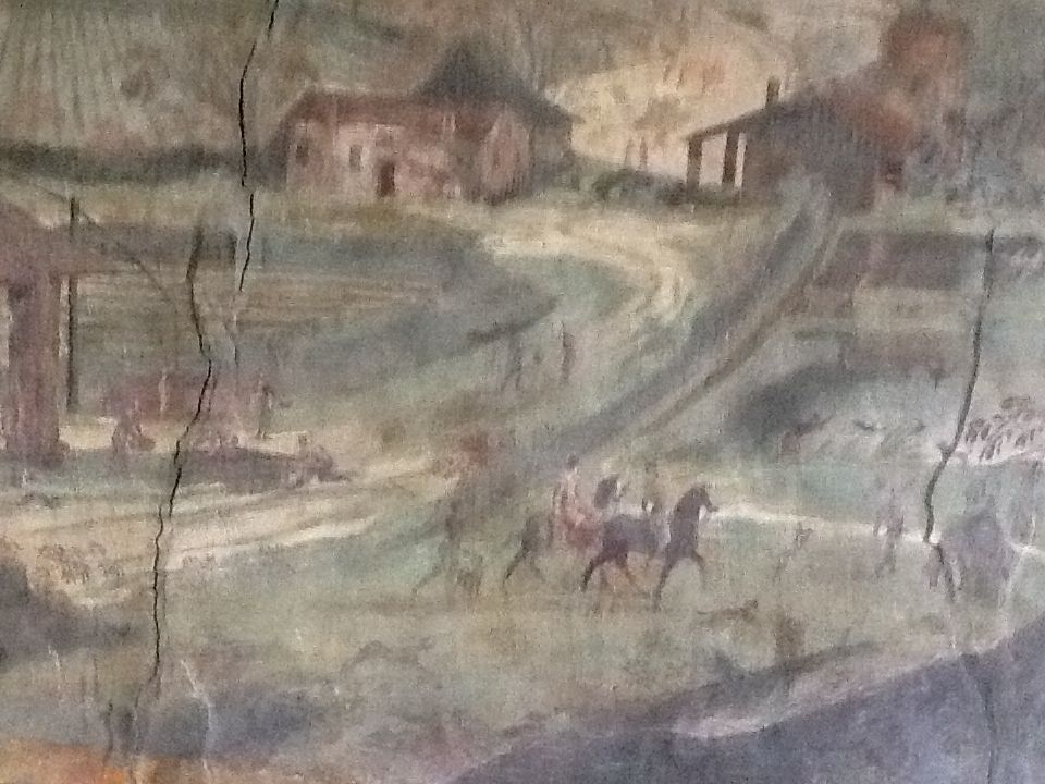 - Descrizione: 000570 - Affresco nella stanza a nord della villa: "Paggio con cane" e vedute paesaggistiche.