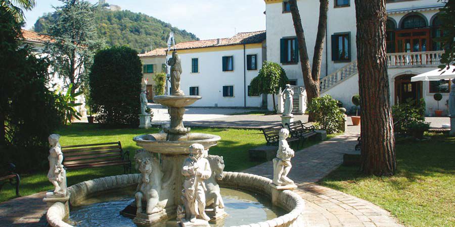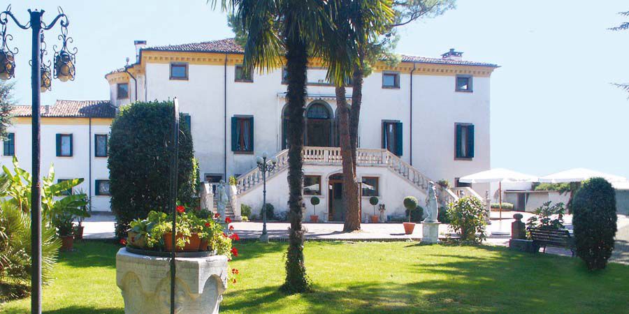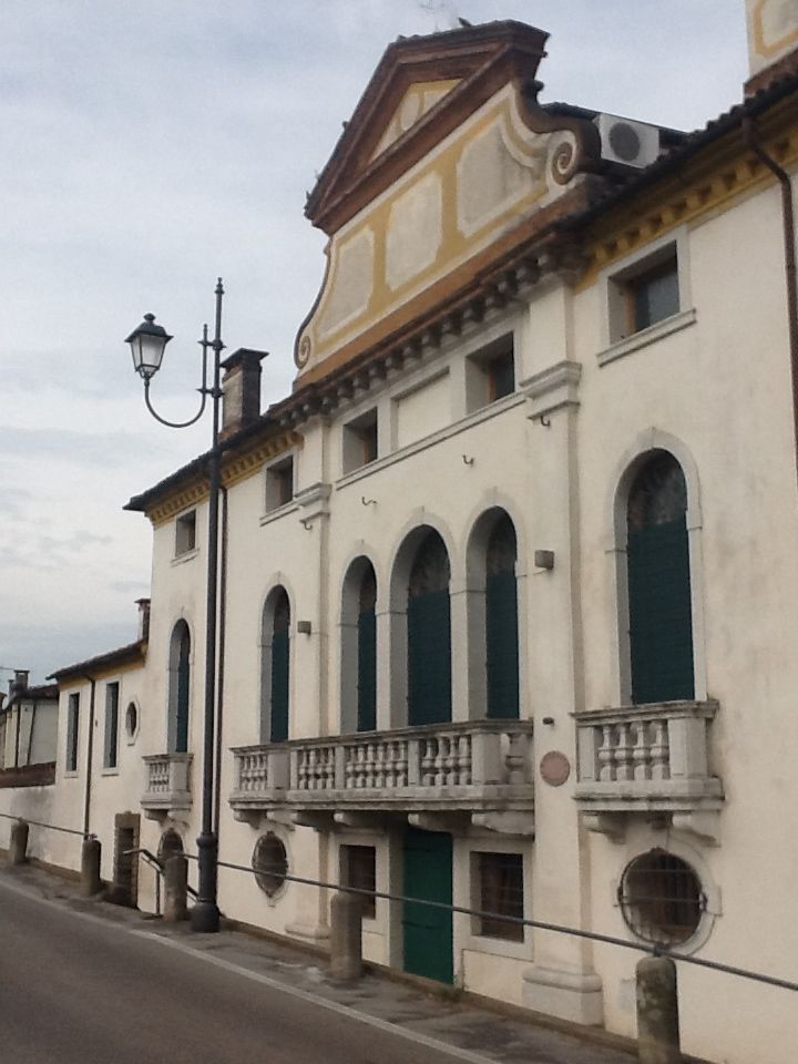 La villa con le sue ali laterali si affaccia su strada. L'edificio si eleva di due piani più le soffitte con la sopraelevazione settecentesca della parte centrale coronata da timpano. Il portale di accesso è architravato. Il salone mediano si apre con una trifora con balaustra.Elementi Decorativi: