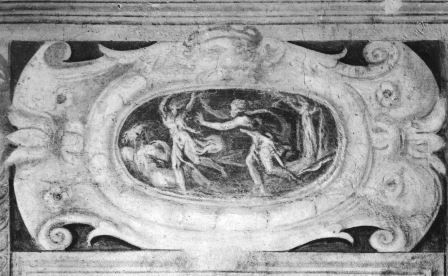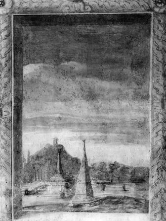 - Descrizione: Tra gli affreschi conservati, un ampio paesaggio e un ovale contenente l'"Inseguimento di una ninfa" nella sovrapporta, entrambi collocati sulla parete sud, e un ampio paesaggio sulla parete a nord.