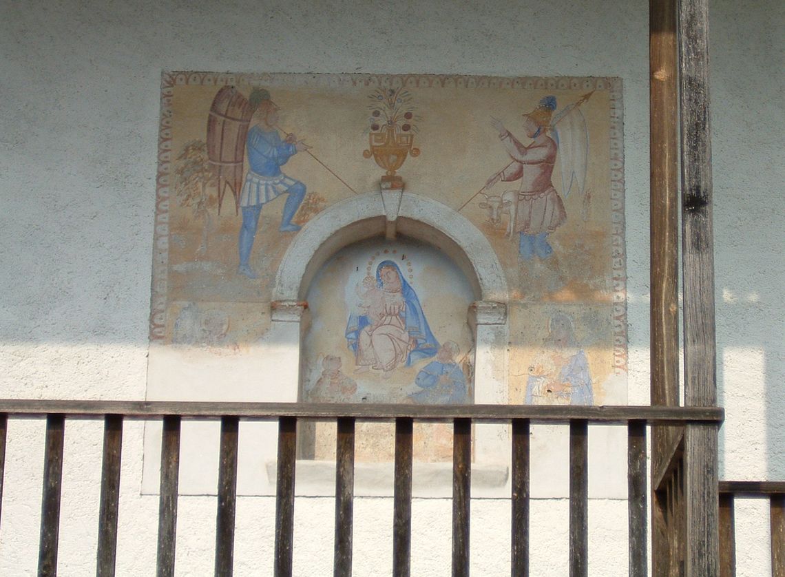 - Descrizione: Un'edicola sacra ricavata nel muro esterno del rustico utilizzato come stalla-fienile presenta un affresco, di gusto popolare, raffigurante l' "Addolorata".