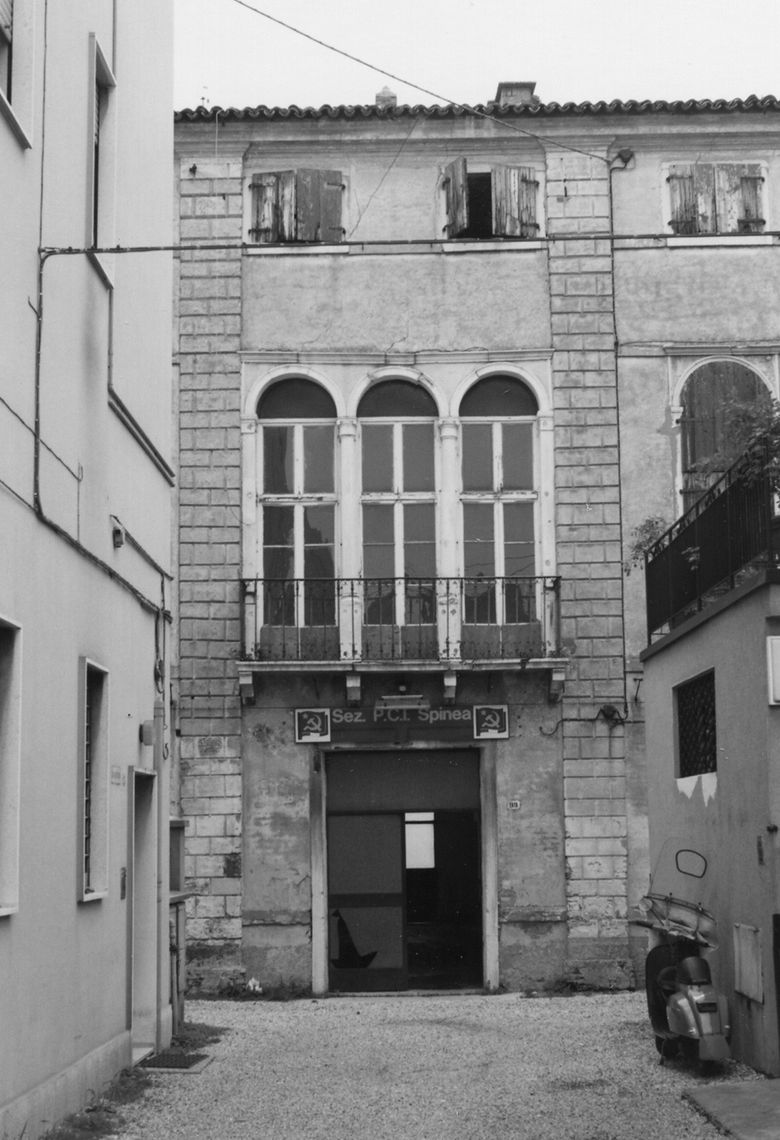 Complesso costituito da un corpo centrale cinquecentesco, con due lunghe ali in continuità. Il corpo centrale presenta pianta a T, tre livelli, tetto a padiglione composito con abbaini arretrati e in andamento di falda. Quattro paraste bugnate di ordine gigante, con trifora centrale centinata a tutto sesto a piano primo, scandiscono la facciata. Salone centrale passante. Ali laterali più recenti si impostano su due livelli, con tetto a mezzo padiglione.Specifiche: