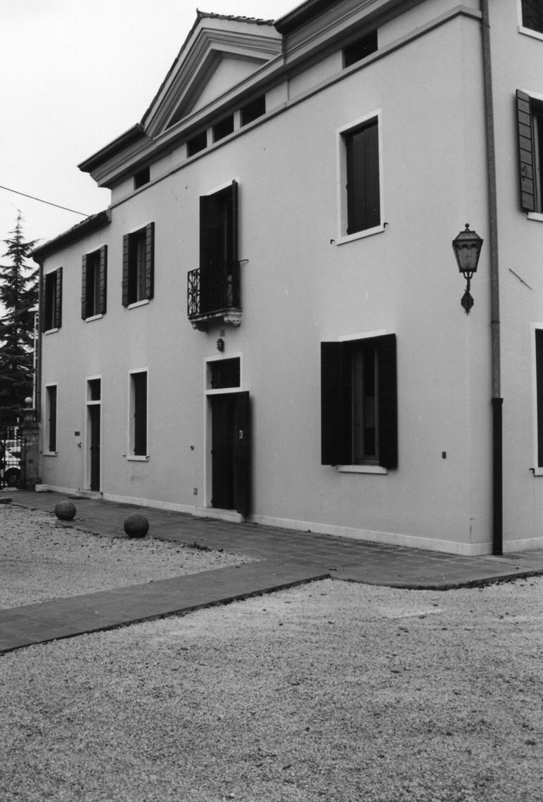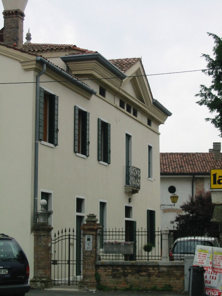 Villa a pianta rettangolare, su tre piani, con tetto a padiglione e timpano triangolare a Ovest. Appendice edilizia a Nord.Specifiche: