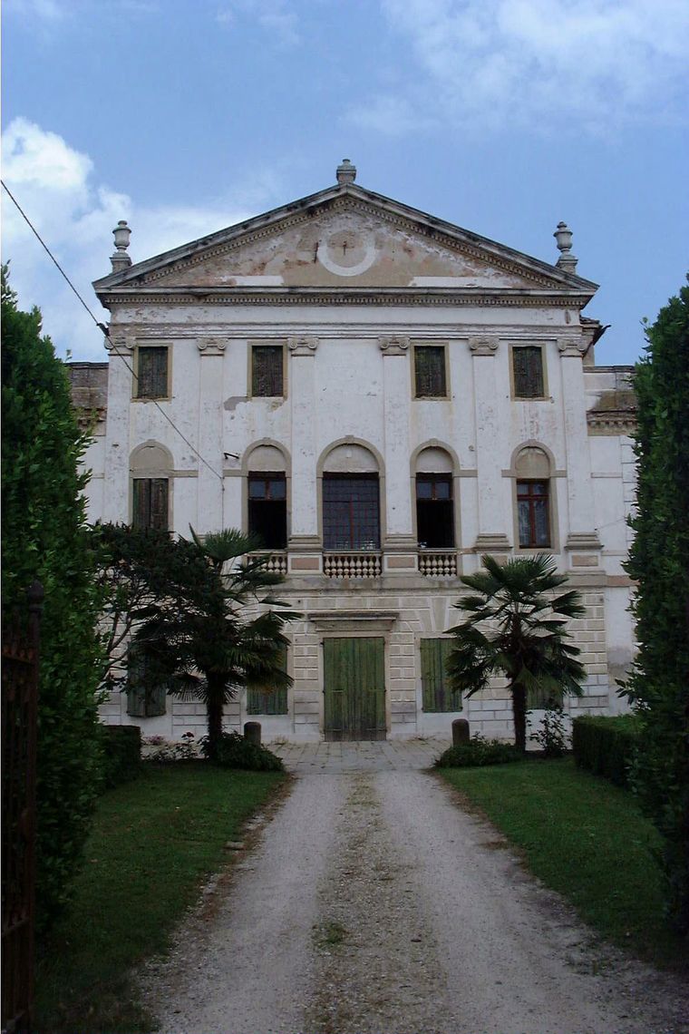 La villa è formata da un corpo centrale, elevato di tre piani e coronato da frontone a due ali laterali e su due livelli. Nel prospetto verso nord un loggiato in aggetto.Specifiche: