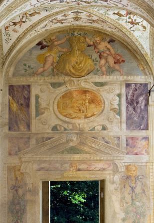 - Descrizione: Loggia meridionale del piano terra: affresco a grottesche sul soffitto della loggia.