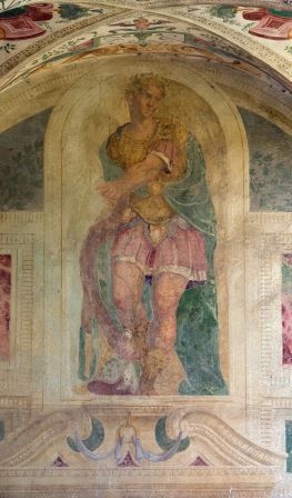 - Descrizione: Affresco a parete al piano superiore della loggia sud raffigurante Sofonisba che muore per veleno.