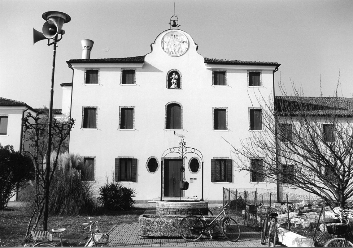 L'edificio a pianta rettangolare si eleva su tre piani. La tripartizione della facciata è affidata alla regolare distribuzione delle aperture rettangolari sulle porzioni laterali e, al centro, alla sovrapposizione di ingresso e finestra ad arco ribassato del piano nobile. A conclusione della porzione mediana, una piccola nicchia con una statua della Madonna e una meridiana collocata superiormente.Specifiche: